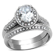 High polished (no plating) Stainless Steel Ring with AAA Grade CZ in Clear