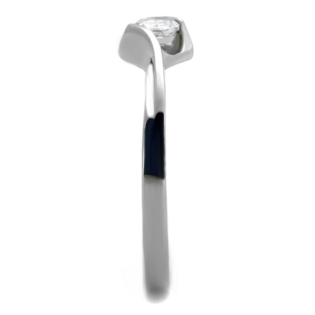 High polished (no plating) Stainless Steel Ring with AAA Grade CZ in Clear
