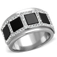 High polished (no plating) Stainless Steel Ring with Synthetic Onyx in Jet