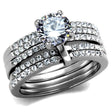 High polished (no plating) Stainless Steel Ring with AAA Grade CZ in Clear