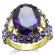 IP Gold(Ion Plating) Stainless Steel Ring with AAA Grade CZ in Amethyst