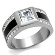 High polished (no plating) Stainless Steel Ring with Top Grade Crystal in Clear