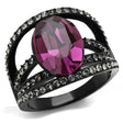 IP Black(Ion Plating) Stainless Steel Ring with Top Grade Crystal in Amethyst