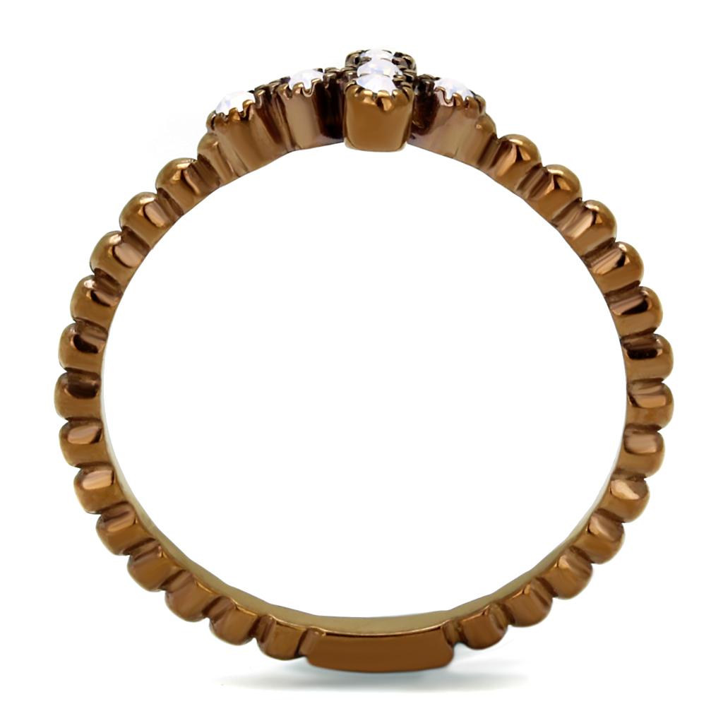IP Coffee light Stainless Steel Ring with Top Grade Crystal in Light Rose
