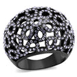 IP Light Black (IP Gun) Stainless Steel Ring with Top Grade Crystal in Tanzanite