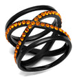 IP Black(Ion Plating) Stainless Steel Ring with Top Grade Crystal in Orange