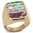 IP Rose Gold(Ion Plating) Stainless Steel Ring with Leather in Multi Color