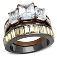 IP Light Black & IP Light coffee Stainless Steel Ring with AAA Grade CZ in Clear