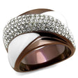 Two Tone IP Light Brown (IP Light coffee) Stainless Steel Ring with Top Grade Crystal in Clear