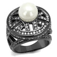 IP Light Black (IP Gun) Stainless Steel Ring with Synthetic Pearl in White