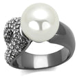 IP Light Black (IP Gun) Stainless Steel Ring with Synthetic Pearl in White