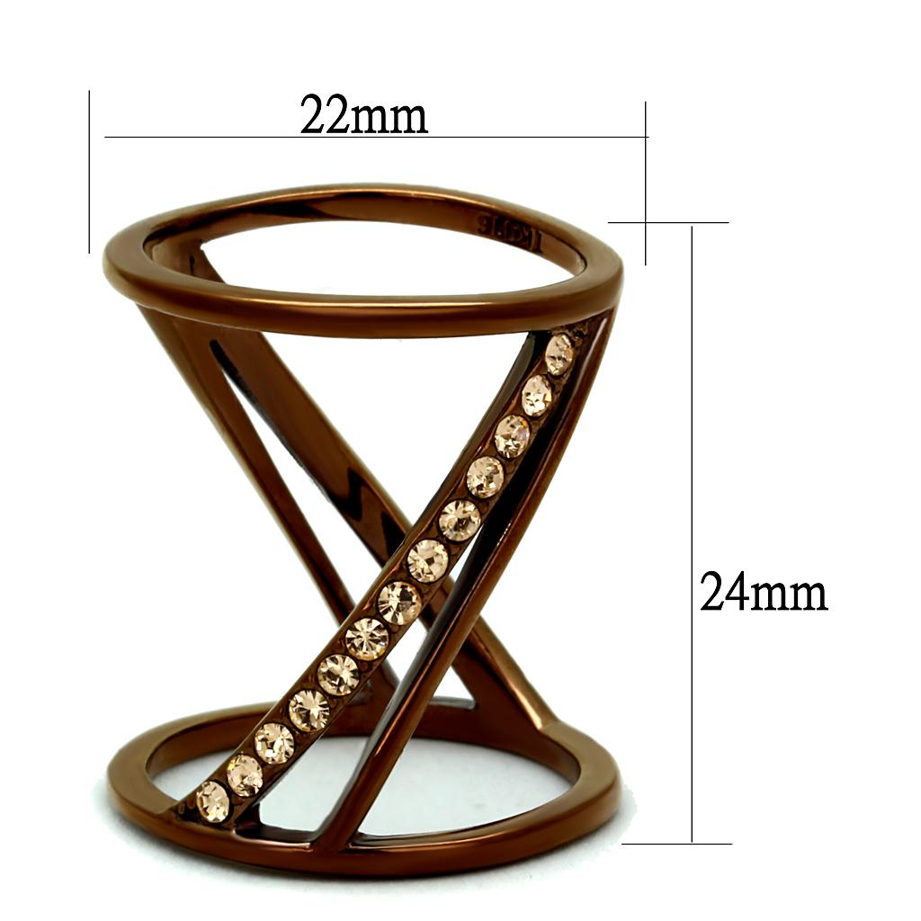 IP Coffee light Stainless Steel Ring with Top Grade Crystal in Light Peach