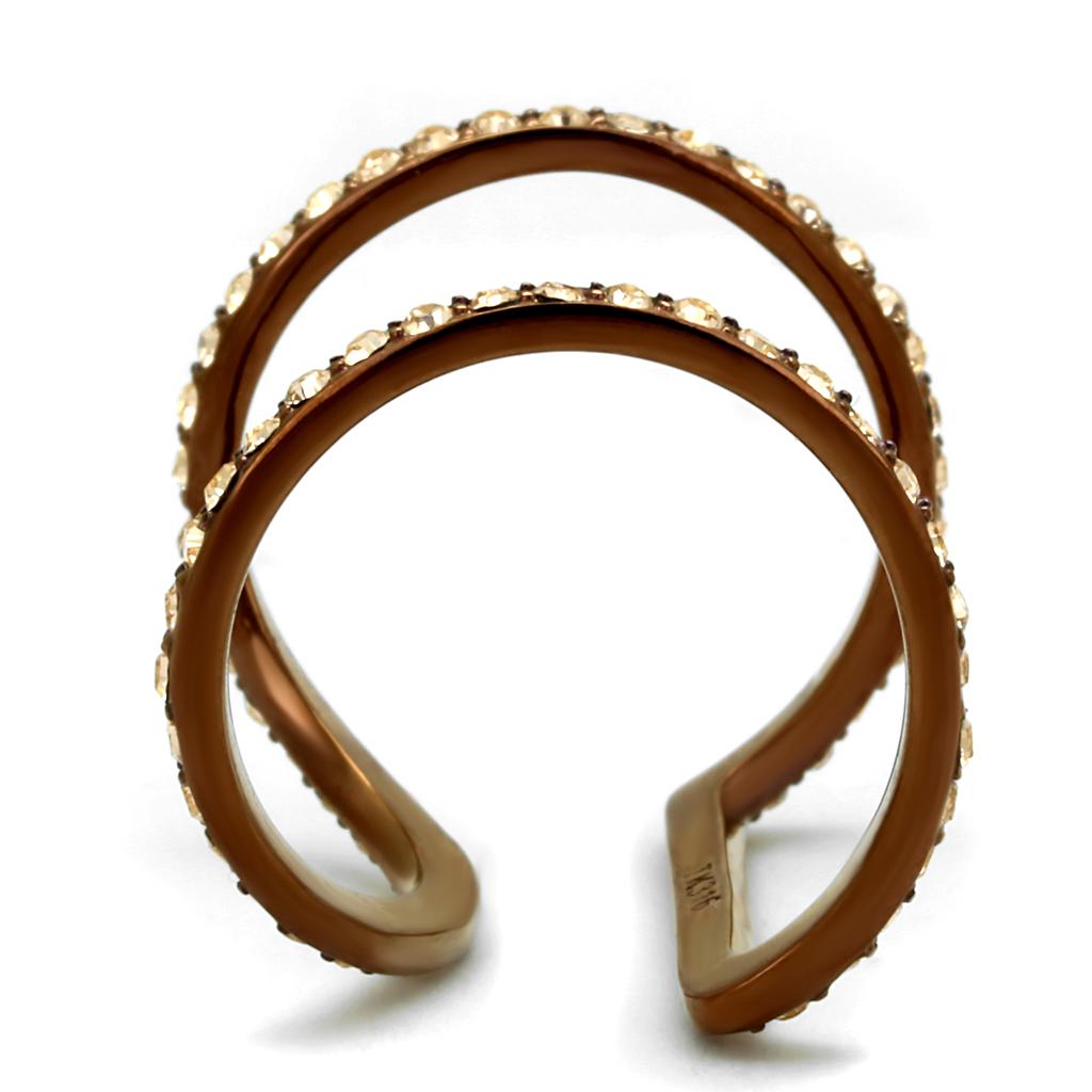 IP Coffee light Stainless Steel Ring with Top Grade Crystal in Light Peach