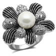 High polished (no plating) Stainless Steel Ring with Synthetic Pearl in White