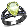 IP Light Black (IP Gun) Stainless Steel Ring with AAA Grade CZ in Apple Green color