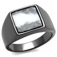 IP Light Black (IP Gun) Stainless Steel Ring with Semi-Precious Zebra Jasper in Gray