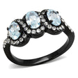 IP Black(Ion Plating) Stainless Steel Ring with AAA Grade CZ in Sea Blue
