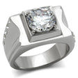 High polished (no plating) Stainless Steel Ring with AAA Grade CZ in Clear