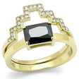 IP Gold(Ion Plating) Stainless Steel Ring with AAA Grade CZ in Black Diamond