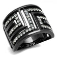 IP Light Black (IP Gun) Stainless Steel Ring with Top Grade Crystal in Clear
