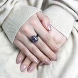 IP Black(Ion Plating) Stainless Steel Ring with AAA Grade CZ in Amethyst