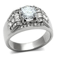 High polished (no plating) Stainless Steel Ring with AAA Grade CZ in Clear