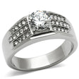 High polished (no plating) Stainless Steel Ring with AAA Grade CZ in Clear