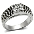 High polished (no plating) Stainless Steel Ring with Top Grade Crystal in Clear
