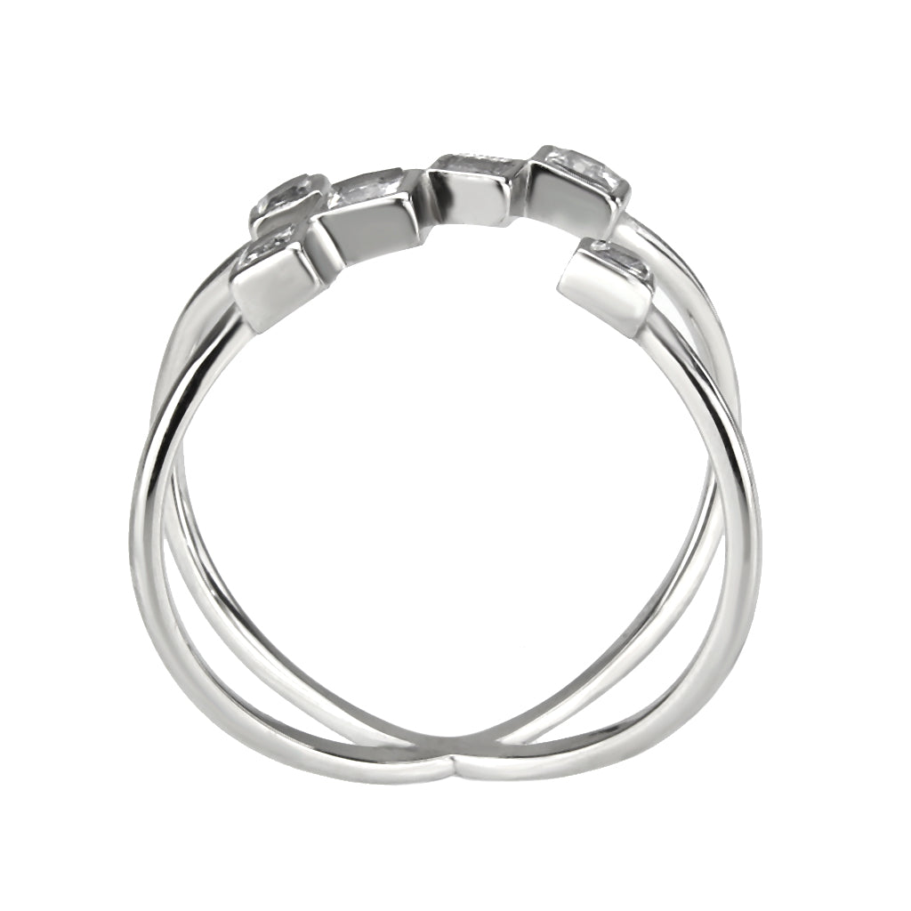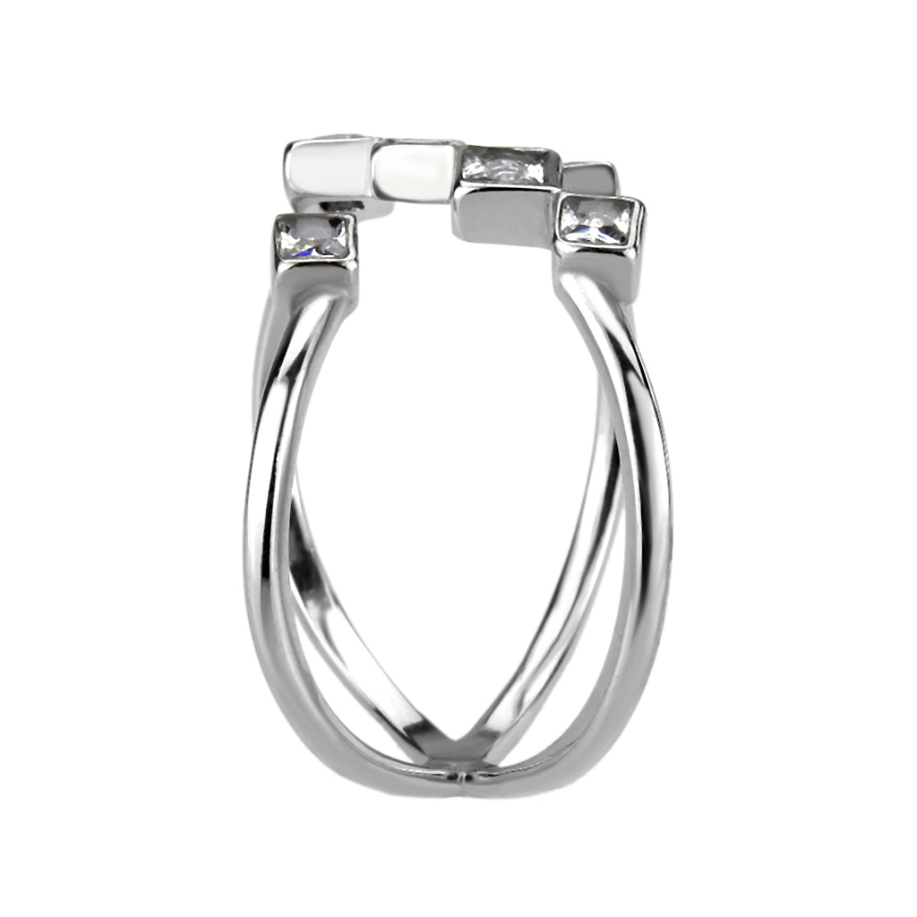 TK3730 High polished Stainless Steel Ring with AAA Grade CZ in Clear