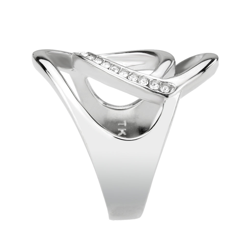 TK3731 High polished Stainless Steel Ring with Top Grade Crystal in Clear