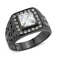 IP Black (Ion Plating) Stainless Steel Ring with AAA Grade CZ in Clear