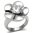 High polished (no plating) Stainless Steel Ring with AAA Grade CZ in Clear