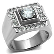 High polished (no plating) Stainless Steel Ring with AAA Grade CZ in Clear