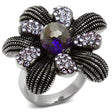 High polished (no plating) Stainless Steel Ring with Synthetic Synthetic Glass in Amethyst