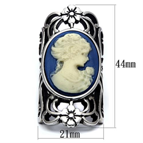 High polished (no plating) Stainless Steel Ring with Synthetic Synthetic Stone in Capri Blue