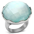 High polished (no plating) Stainless Steel Ring with Synthetic Synthetic Glass in Sea Blue