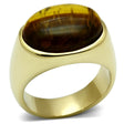 IP Gold(Ion Plating) Stainless Steel Ring with Synthetic Tiger Eye in Topaz