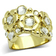 IP Gold(Ion Plating) Stainless Steel Ring with Top Grade Crystal in Clear