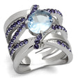 High polished (no plating) Stainless Steel Ring with Synthetic Synthetic Glass in Light Sapphire