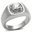 High polished (no plating) Stainless Steel Ring with AAA Grade CZ in Clear