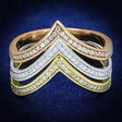 Rhodium + Gold + Rose Gold 925 Sterling Silver Ring with AAA Grade CZ in Clear