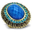 IP Gold(Ion Plating) Stainless Steel Ring with Synthetic Synthetic Stone in Sea Blue
