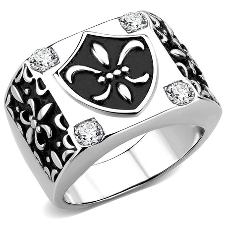 High polished (no plating) Stainless Steel Ring with AAA Grade CZ in Clear