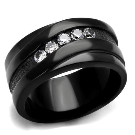IP Black(Ion Plating) Stainless Steel Ring with AAA Grade CZ in Clear