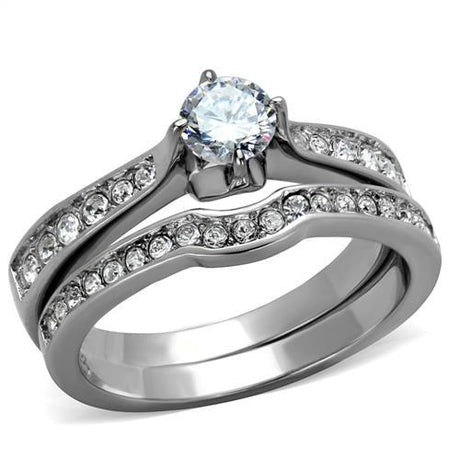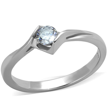 High polished (no plating) Stainless Steel Ring with AAA Grade CZ in Clear