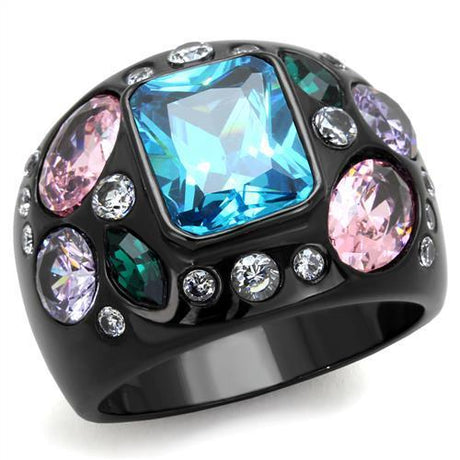IP Black(Ion Plating) Stainless Steel Ring with AAA Grade CZ in Sea Blue