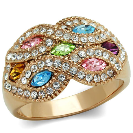 IP Gold(Ion Plating) Stainless Steel Ring with Top Grade Crystal in Light Rose