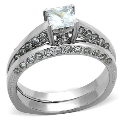 High polished (no plating) Stainless Steel Ring with AAA Grade CZ in Clear