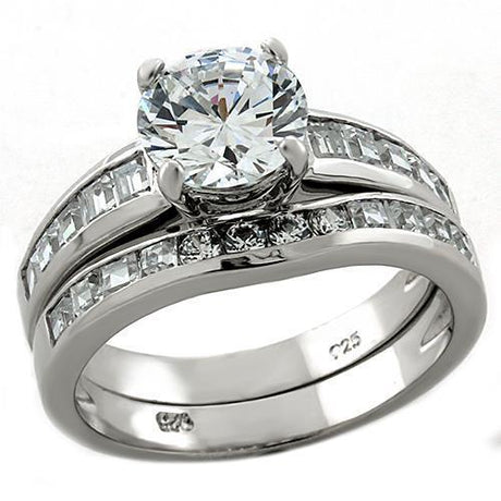 Rhodium 925 Sterling Silver Ring with AAA Grade CZ in Clear
