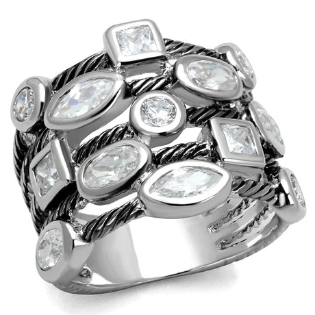 Rhodium Brass Ring with AAA Grade CZ in Clear